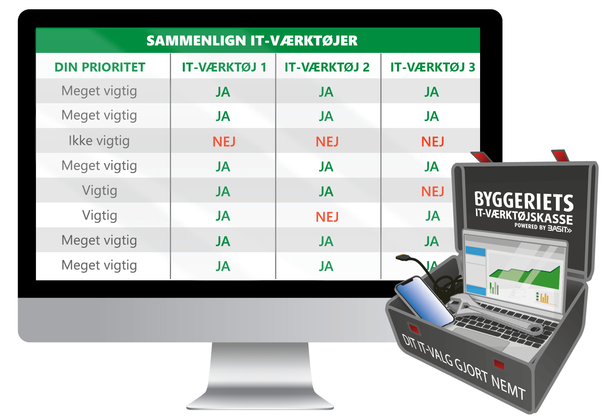 Hvad skal IT-værktøjet kunne? Helt konkret - hvad skal IT-værktøjet hjælpe til med i virksomheden? IT-værktøjskassen sorterer IT-værktøjer til og fra, 100% afstemt med jeres behov og krav.